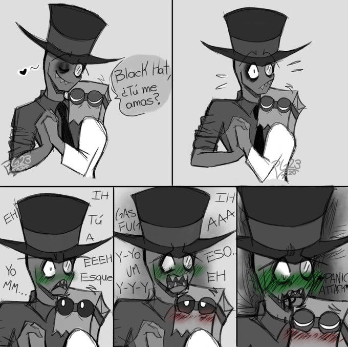 💓 Día 14 - Nervioso 💓 - Black Hat.. ¿Tú me amas?.. -. BH: *Ataque de Panico* #octubredepaperhat #paperhattober #paperhatober #PaperHat #inktober2020 #Villainous