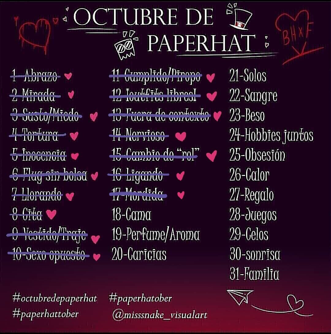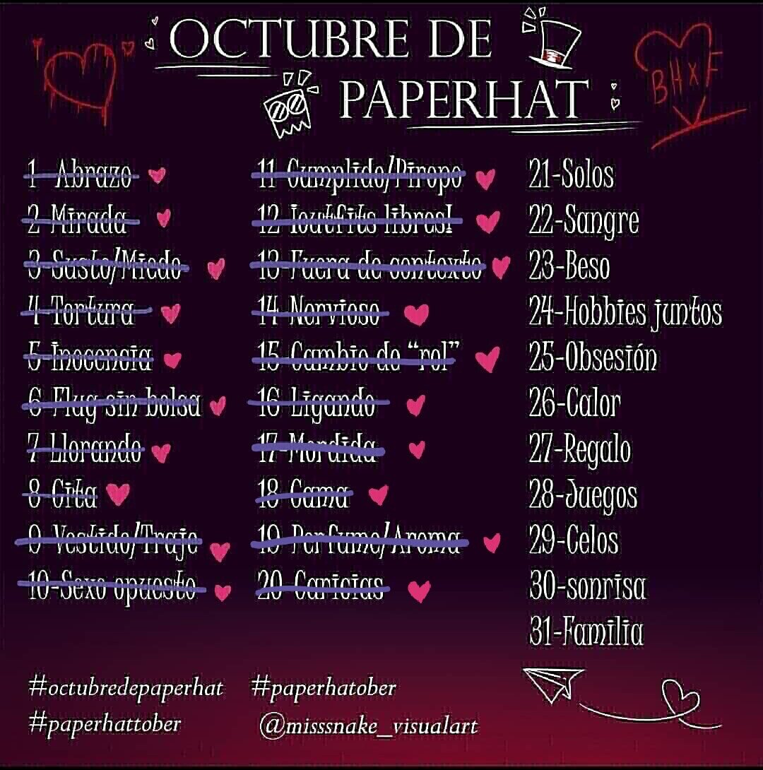 Inktober - Días 15, 16 y 17 💞 Cambio de Rol 💞 🌹 Ligando 🌹 🔥 Mordida 🔥 #octubredepaperhat #paperhattober #paperhatober #PaperHat #inktober2020 #Villainous