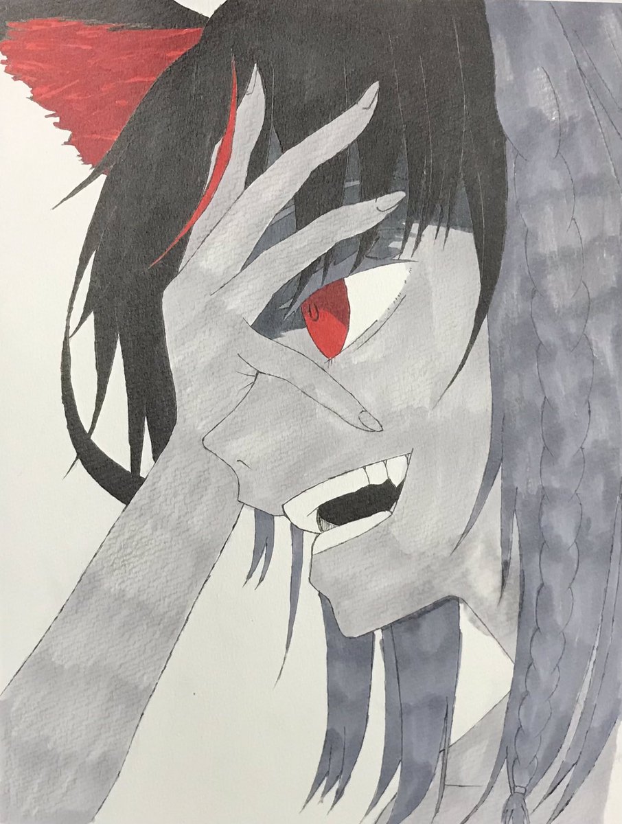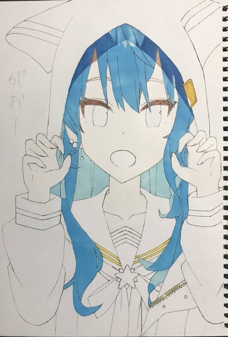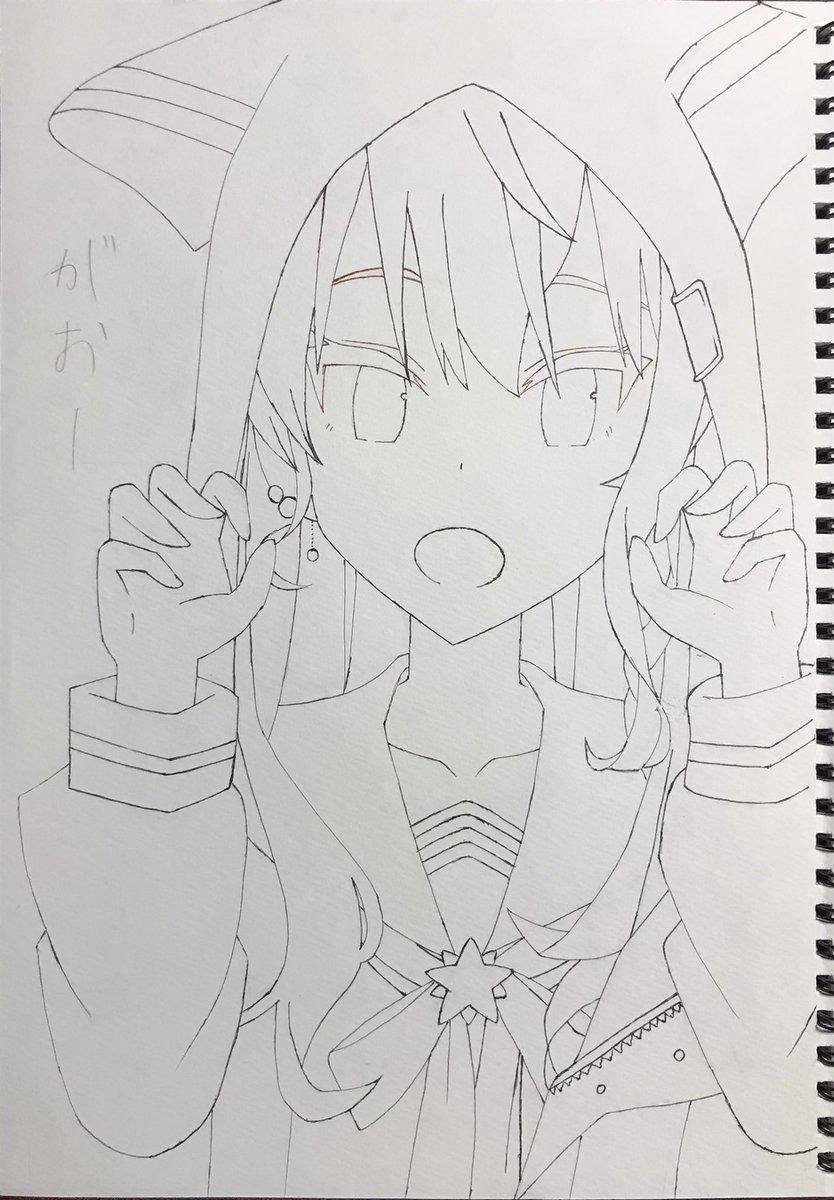 一様出来ました。やっぱり、色塗るの下手、、、 #絵フブキ #黒上フブキ #イラスト