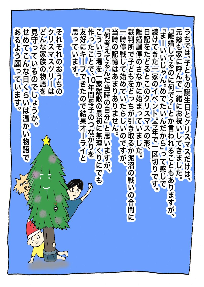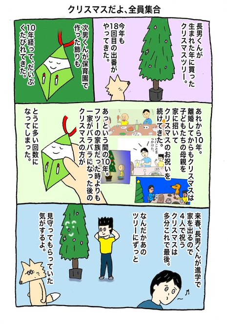 ずっと続くもんだと思っていた家族行事にもいつか終わりが来る。 10年前に終わるはずだったクリスマスをここまで続けられて本当に良かった。 ちなみに我が家は明日祝います。