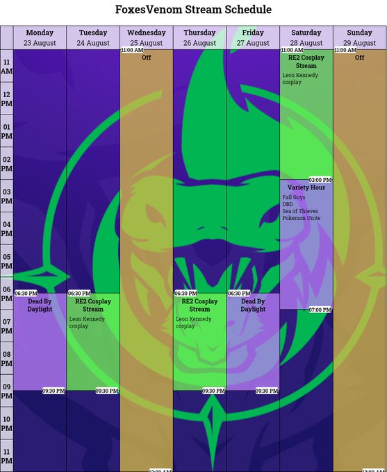 As promised, here is my #streamschedule for the week. Anyone interested in seeing my #leonkennedy #cosplay live can tune into the below times(EST) for the #ResidentEvil2Remake streams. Hope to see you in my next stream! #twitchaffiliate #MondayMotivation