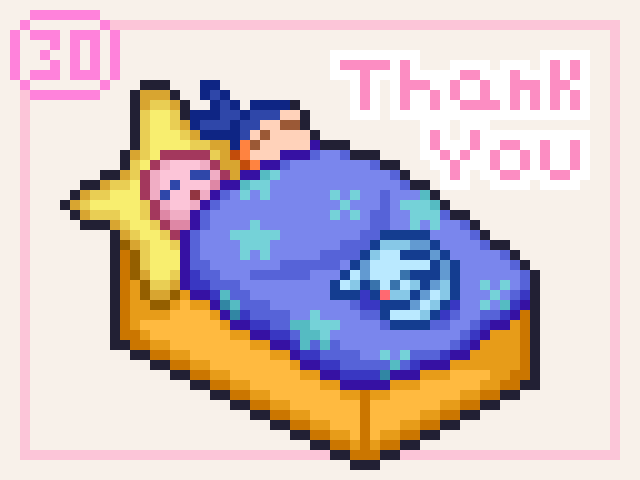 Thank you for joining me on this Kirby-filled adventure! Now it's time to let our heroes rest~ ⭐️💤 #30daysofkirby #pixelart