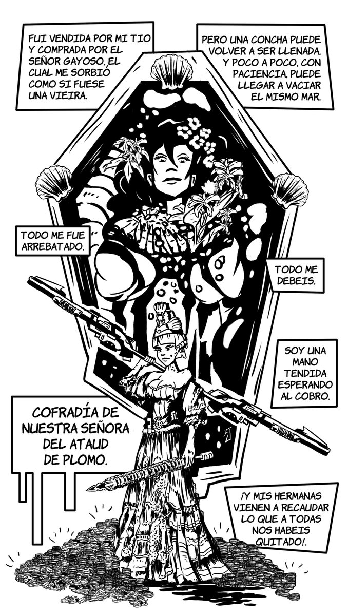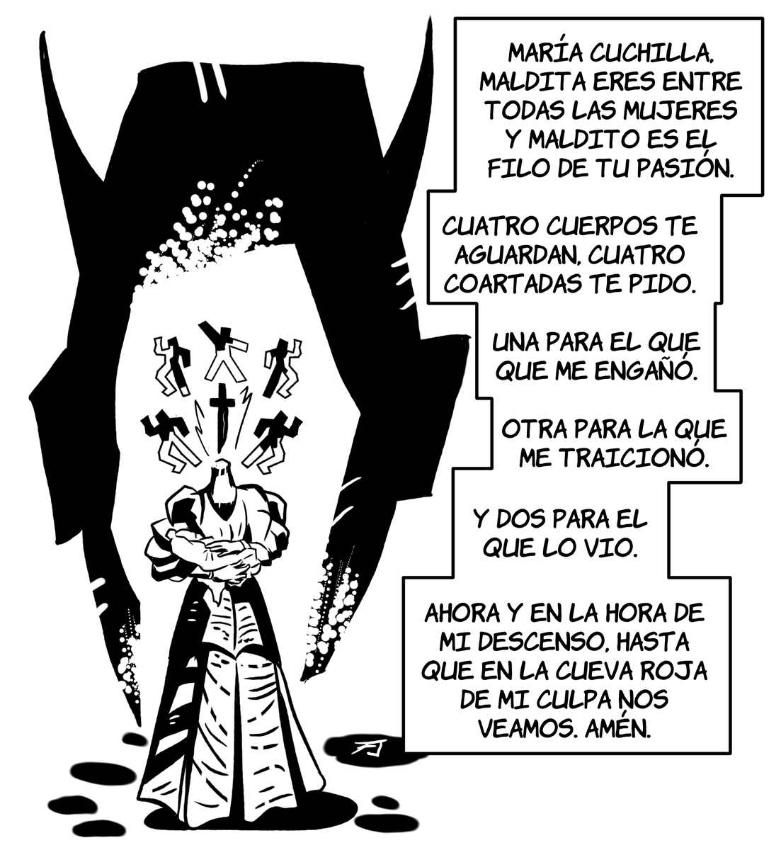 María Cuchilla, patrona de los crímenes sin resolver. Mató a su propio hermano pequeño para que el demonio le concediese el amor de un ermitaño . Maldita, ahora habita en una cueva ensangrentada. Pose tomada del stock de @JookpubStock #inktober2021 #Mar_cuayada #SavageWorlds