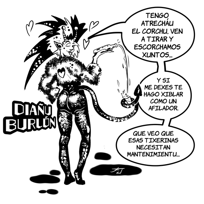 El diañu burlón es un diablillo asturiano que gusta gastar bromas pesadas y tirarle los tejos a todo lo que se encuentre en ángulo de tiro #Mar_cuayada #inktober2021 #SavageWorlds #rolenespañol #Asturias #mitologia #Inktober Pose del diablo, diabla o lo que pinte @JookpubStock