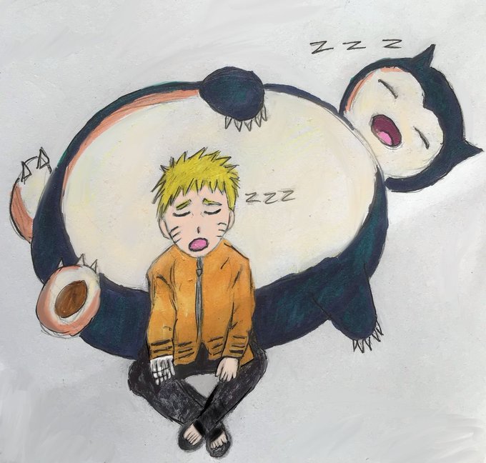 My piece for day 21 of #Inktober -#Sleep - #narutouzumaki and #Snorlax lol drew this in #finelinerpens and #sharpies :)