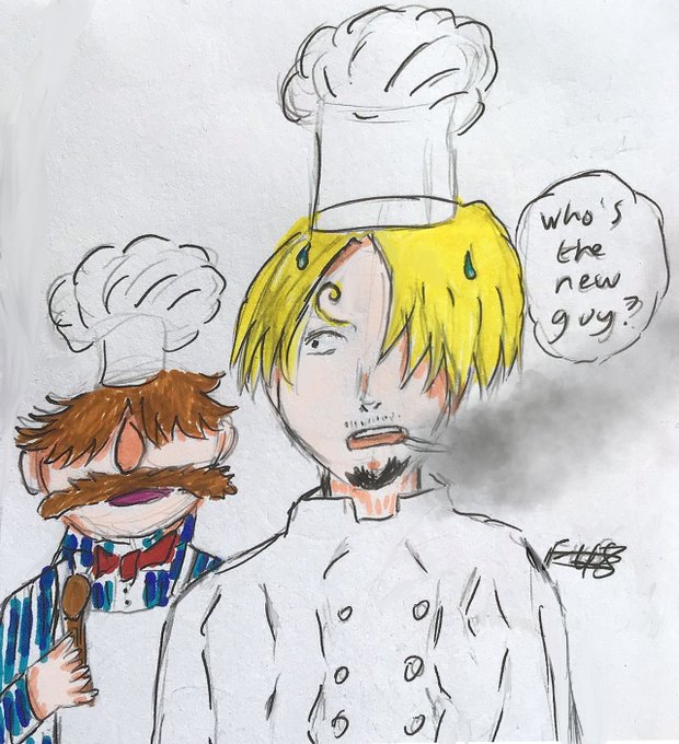My piece for day 22 of #Inktober -#Chef- #sanjivinsmoke and #Swedishchef from #themuppets 🤣😂how this came into my head I don't know😂🤣 drew this in #finelinerpens and #sharpies and #procreate :)