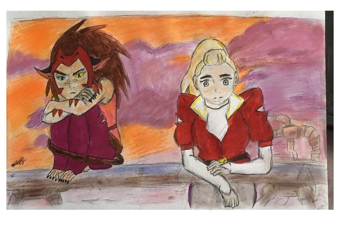 My piece for day 15 of #Inktober -#Outpost - #Catra and #Adora in the area in the horde where they used to talk XD I got stuck again lol drew this in #finelinerpens and #sharpies :) #sheraandtheprincessesofpower #inktober2020 #catdora
