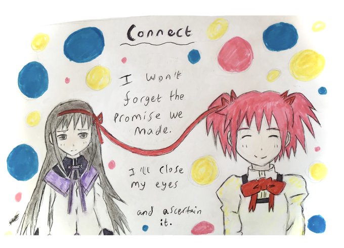 #Inktober day 26 - #Connect - #Homuraakemi and #Madokakaname Lyrics are from the opening of #PuellaMagiMadokaMagica madoka.fandom.com/wiki/Connect #inktober2021
