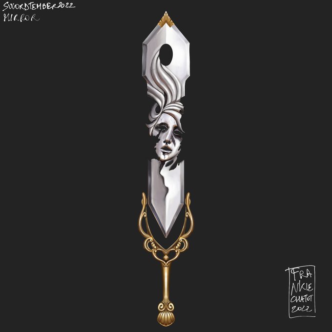 Day 7 of #swordtember2022 Mirror Legends say that the sword takes on the appearance of whoever wields it in battle, slowly absorbing their life force. #swordtember