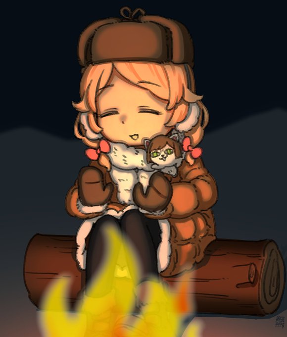 26 53 暖かい冬の焚き火と「ふわぁ〜」っとしてるこずえちゃん pixiv.net/artworks/85729… #遊佐こずえ 20/11/17 20:01