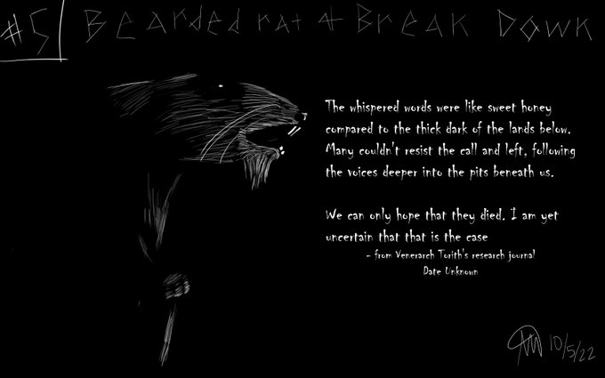 Blackut Day 5 - Bearded Rat and Break Down They didn't know what it was, yet it called to them all. Perhaps...? #inktober2022 #rattober #rattober2022 #beansrattober #darktober #inktober #InkToberDay5