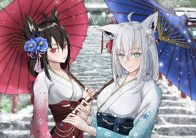 明けましておめでとうございました、今年も後11ヶ月切りました。 気分はまだ正月なので、フブキちゃんと黒ちゃんの初詣イラストです! #絵フブキ #ホロライブヴィラン