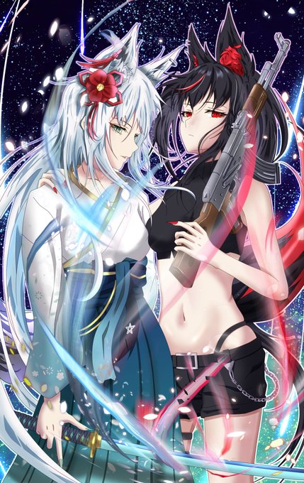 212 895 戦狐白と戦狐黒 #絵フブキ #黒上フブキ 23/04/27 20:00