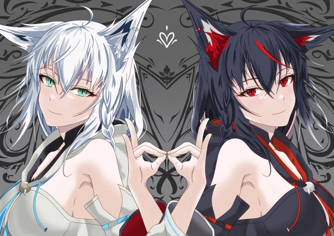 戦狐白と戦狐黒 #絵フブキ #黒上フブキ