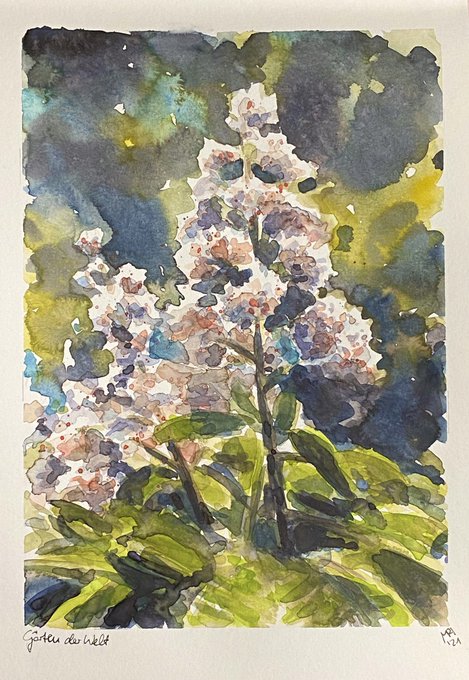 Corona-Skizzen 570: Kastanienblüte in den Gärten der Welt, Berlin. Aquarell 18x26cm #kleineKunstklasse #watercolor #thedailysketch #Flowers #Berlin
