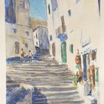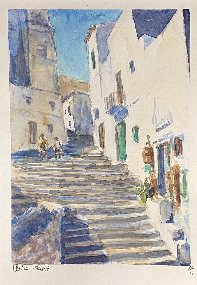 Corona-Skizzen 682: Sonnige Häuser in Ibiza-Stadt, Spanien. Aquarell 18x26cm #KleineKunstklasse #watercolor #urbansketching #thedailysketch #ibiza