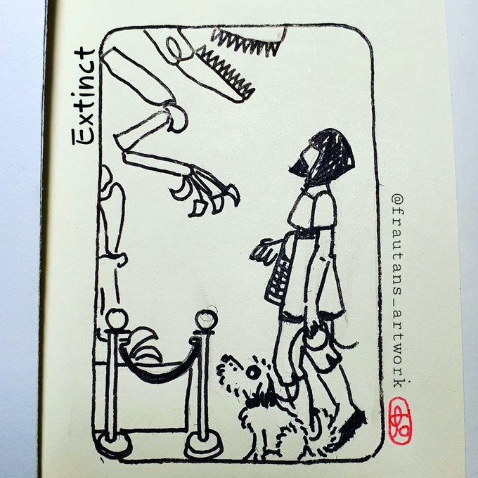 Happy Sunday.. we have a sunny day today. More work but today it is day 24 in Ink.Tobi and the prompt is Extinct. #inktober2021day24 #inktober2021 #twofieswithtobi #dogsoftwitter