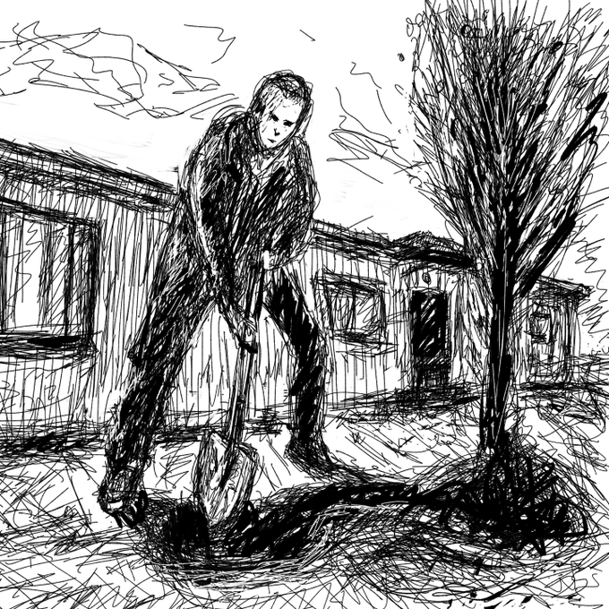 Dig - копать. Просто парень, не делает ничего подозрительного, просто копает яму на своём участке. #inktober #inktober2020 #dig