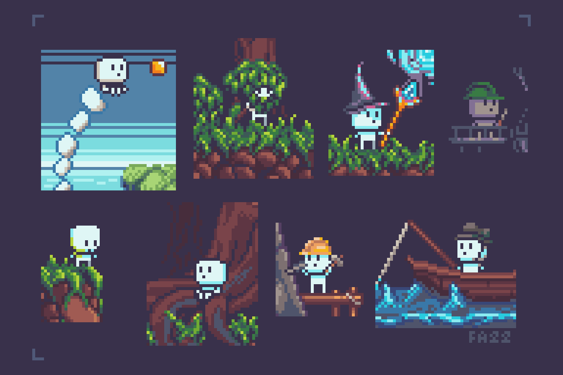 Hi! Whenever I'm not working I usually post pixel dailies and little ghosts! #ArtistOnTwitter