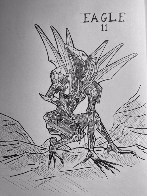 InkTober day 11: "Eagle" "The sky is my world, the sky is my judge..." #Inktober #Inktober2022 #inktober2022day11 #inktober2022day11eagle #eagle #traditional #traditionalart #originalcharacters #original #mecha #robot
