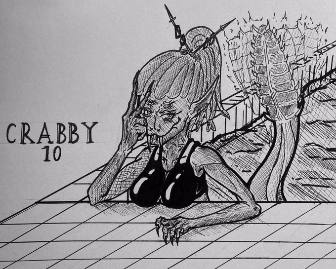 InkTober day 10: "Crabby" "Don't vex-s-s-s-s me, bud..." #inktober2022 #inktober #inktober2022day10 #inktober2022day10crabby #crabby #original #originalcharacter #traditional #traditionalart #monstergirl #monster #girl #snake #rattler #rattle #pool