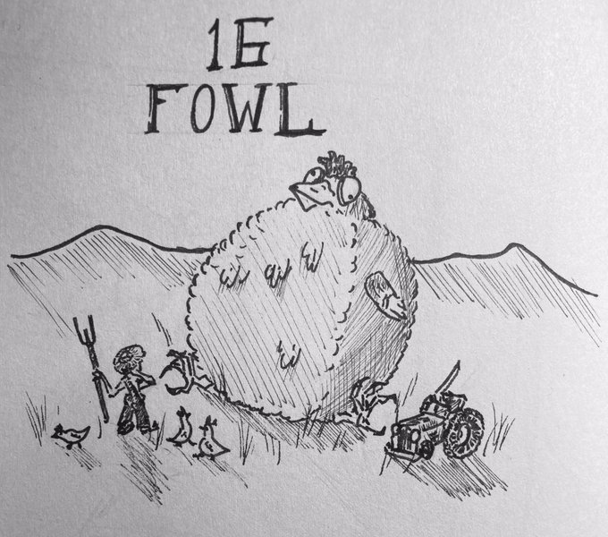 InkTober day 16: "Fowl" This is my Magnum opus... #inktober #inktober2022 #inktober2022day16fowl #inktober2022day16 #fowl #chicken #fanart #art #traditionalart #traditional #conceptart #concept #giant #humor