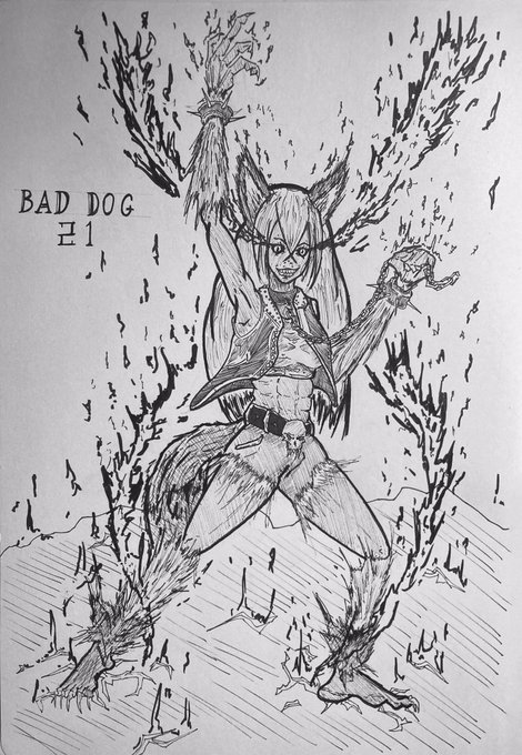 InkTober day 21: "Bad Dog" "Can ya hear those flaming beats?! Those are hell gates slam!!!" Thanks to @theposearchives #inktober2022 #inktober #inktober2022day21 #inktober2022day21baddog #bad #dog #hellhound #monstergirl #tradtionalart #characterdesign #fanart #monstermusume