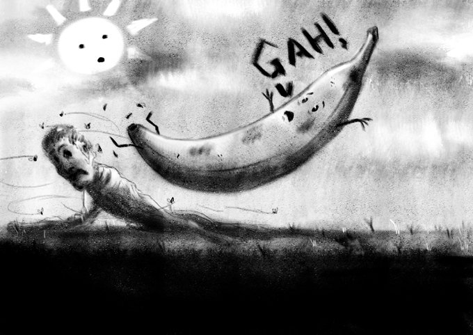 [Inktober Day 12 - Slippery] A lightheart-ish piece today. Remeber littering and skining another human is considered a crime. #inktober2020 #day12 #slippery #funny #darkcomedy #banana #Skin #macabre #digitalart #slip #cartoon #humerous