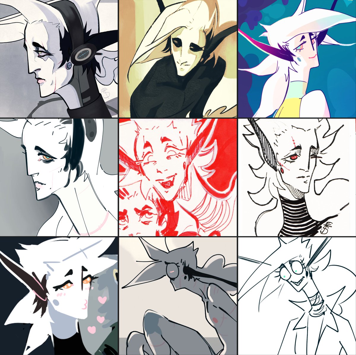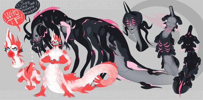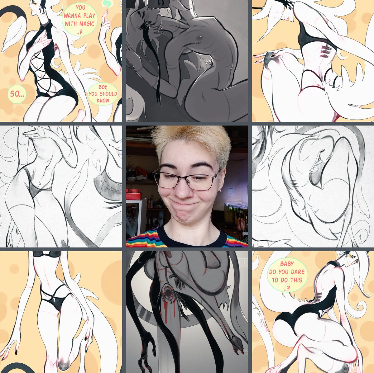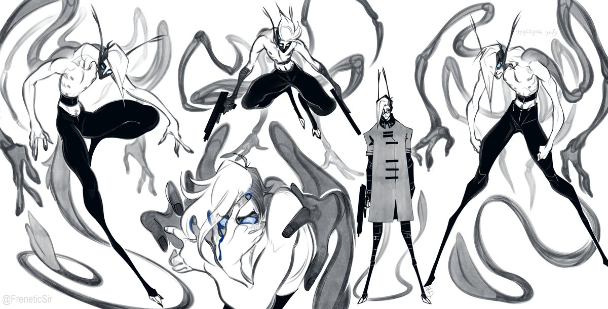 I see lots of #PortfolioDay and #IAmNonbinary posts in my TL, so here is mine 👽💗 Hi! Im Frenetic Sir, NB (he/they) 2D artist obsessed by my nonbinary alien OCs 💔 just hope to do an animatic series about them in future, currently writing a script 🌸