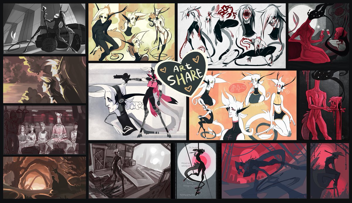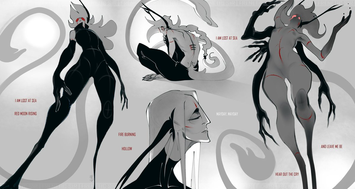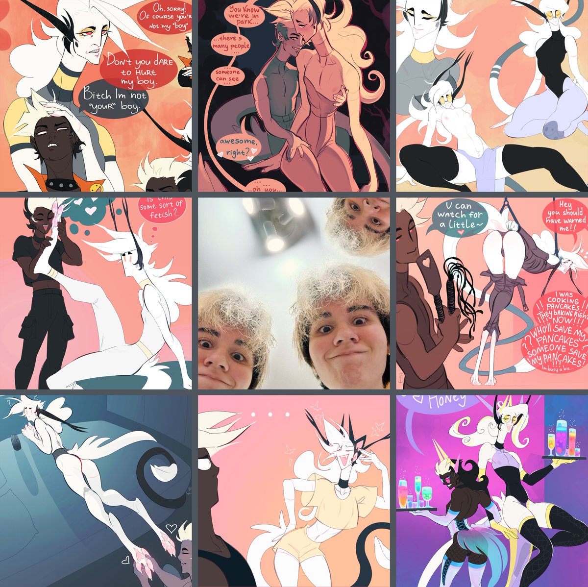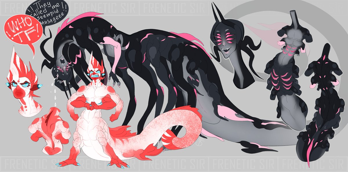 I see lots of #PortfolioDay and #IAmNonbinary posts in my TL, so here is mine 👽💗 Hi! Im Frenetic Sir, NB (he/they) 2D artist obsessed by my nonbinary alien OCs 💔 just hope to do an animatic series about them in future, currently writing a script 🌸