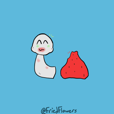 Sorry for not uploading anything lately, summer courses started and I was doing some art for friends so ye. have a Dream blob noming a strawberry~ #dreamfanart