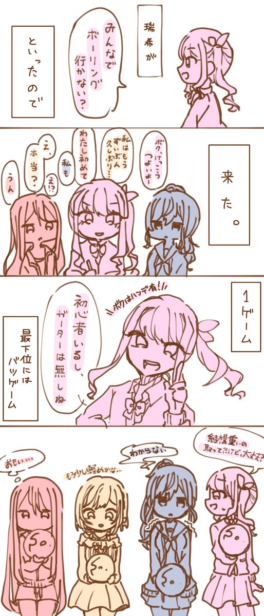 ニーゴでボウリングにいく話。 (マリオネットイベ時期に描いたものなのでニーゴの雰囲気が多少違う) #prsk_FA