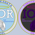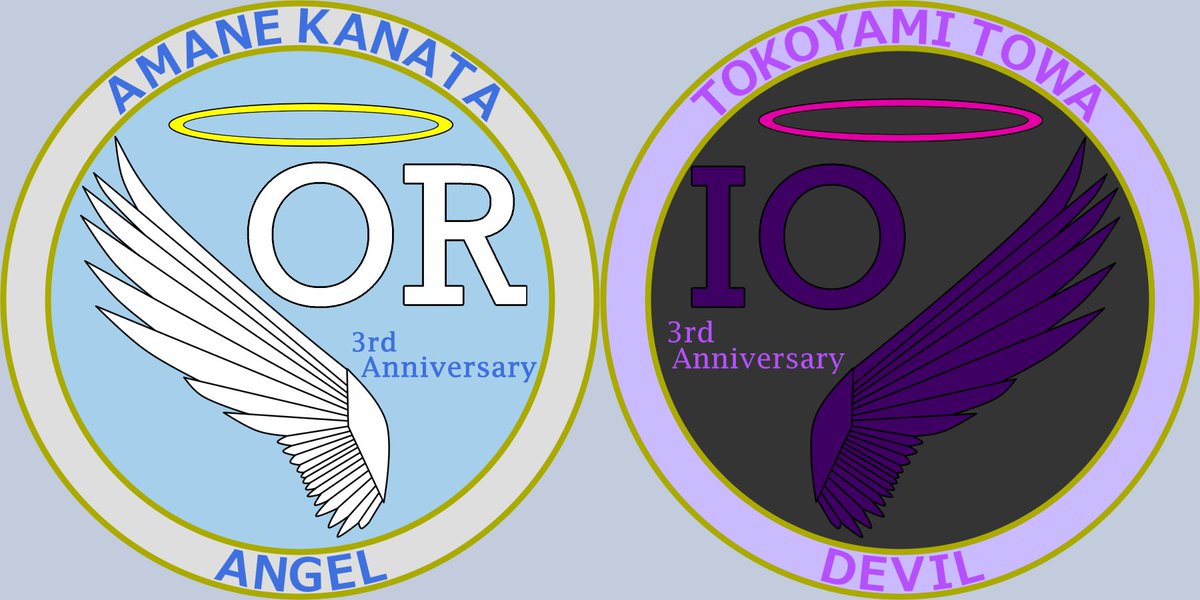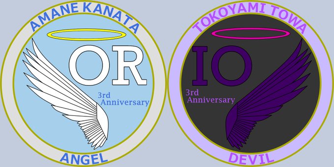 #TOWART #かなたーと #Vtuberワッペン 先月の27日に公開したかなたんの3周年記念ワッペンと、今日公開したトワ様の3周年記念ワッペンは、このようにペアになっていて、合わせると、2人の音楽ユニット名、ORIOとなります! ORIOマジで好きなんよワレ