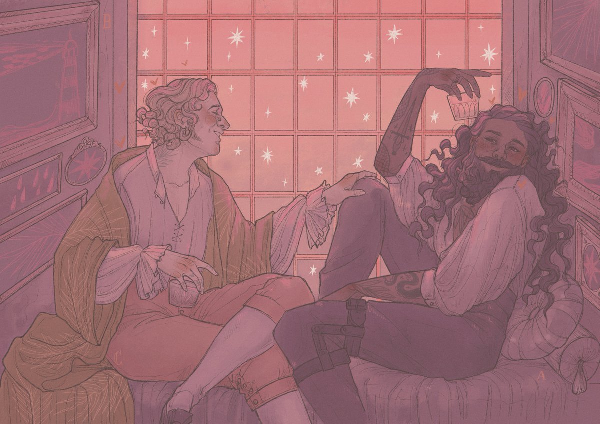 ✨️Commission for @many_birds ✨️ Look at them having a lovely afternoon with books and lucious hair and hearteyes. #ofmd #ofmdfanart