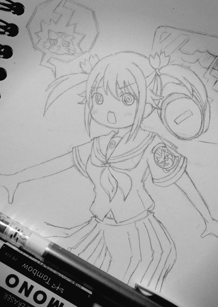 12 41 ミケちゃん線画! #はいふり #illustration #ミケちゃん 20/05/08 00:16
