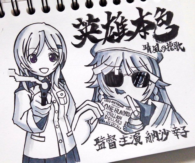 34 85 ワケわからんものを描いてしまった・・・晴風ノワール映画 #はいふり #ハイスクール・フリート #パロディ #モカちゃん #ココちゃん #イラスト 20/06/10 00:44