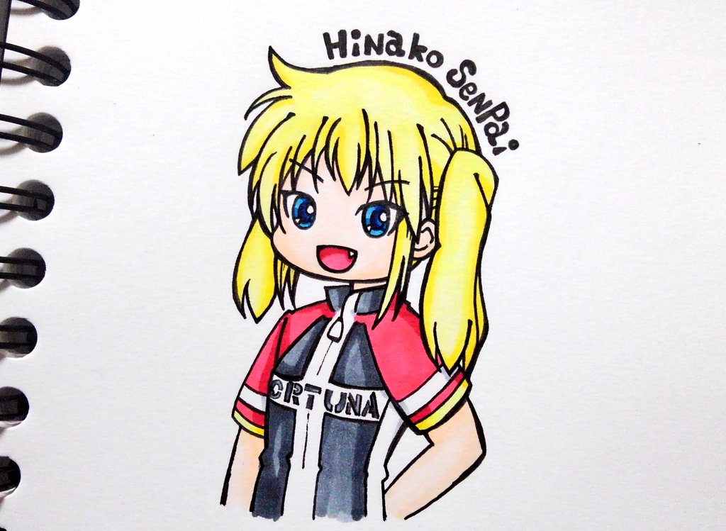 自転車乗って坂登ってると葵ちゃんがアドバイスが脳内に流れるよね♪ #ろんぐらいだぁす #雛子 #雛子先輩 #コピック #イラスト
