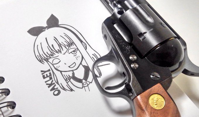 5 21 オークレイさんのシルバーを所持してないのでブラックで、さらに長いのだけど添えて。 #オークレイ #SAA #airsoft #airsoftgun #イラスト 20/07/05 21:37