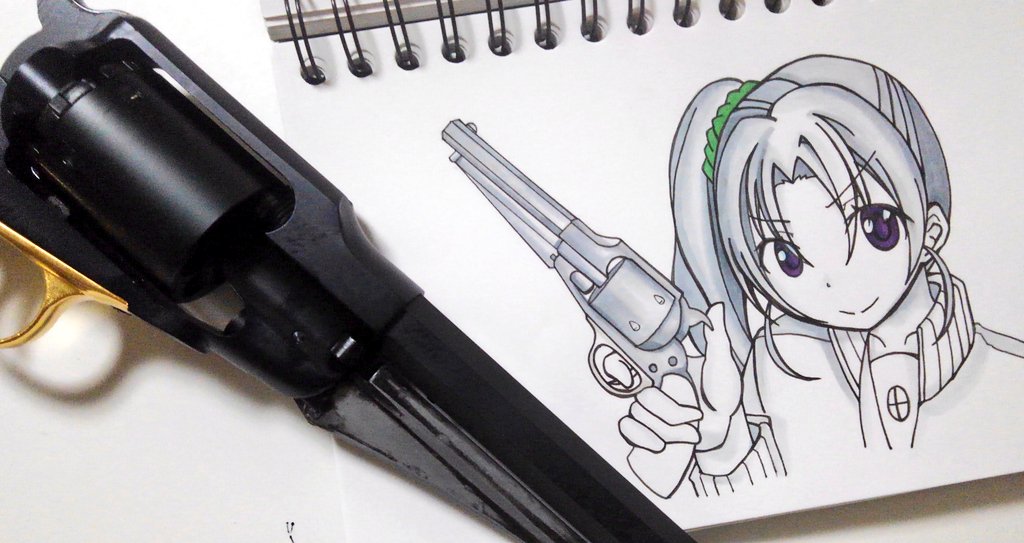 オークレイさんのシルバーを所持してないのでブラックで、さらに長いのだけど添えて。 #オークレイ #SAA #airsoft #airsoftgun #イラスト
