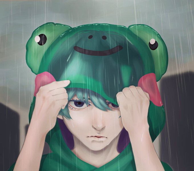 0 1 #illustration #イラスト カエル🐸の雨がっぱ 23/04/02 22:44