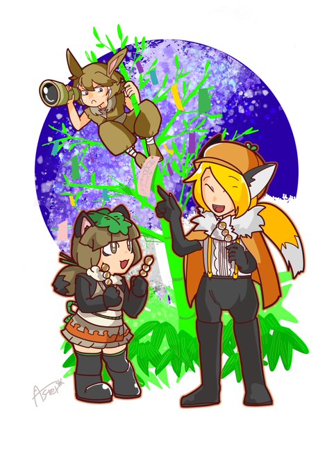 アカギ「アカギ先生から皆さんにお団子プレゼント、食べながら七夕天体観測しまショウ」 ヌーコ「やったぬ!短冊にお団子いっぱい食べたいって書いたらもらえたぬ!」サギト「いや、俺のぶんだろそれ」 ってな感じな師弟。 #明日ガニバルズ #動物擬人化 #絵柄が好みっていう人にフォローされたい
