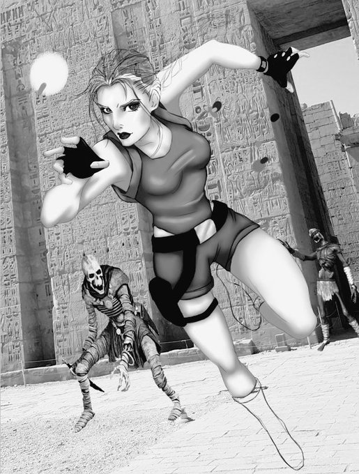 Progress so far... Had nightshift so I couldn't do much 😭😭 I swear I'm gonna finish all 4 pictures tomorrow 🥺🥺 #inktomber #inktober2020 @Ladycroftcz #laracroft #tombraider