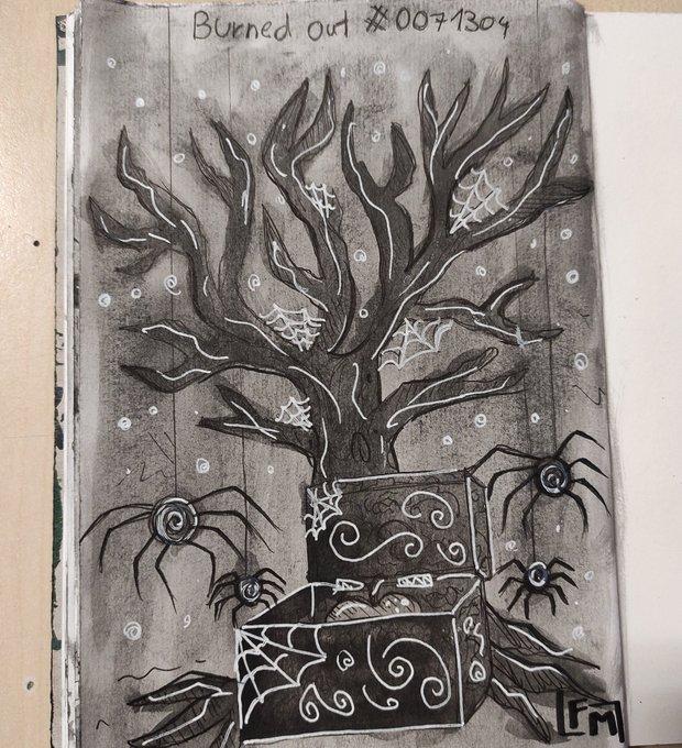 Day 8 - burned out Hilltop Road mention ahhhhh I had to redraw that box so many times I just couldn't get it in the right place #inktober2022 #inktober #themagnusarchives #tmatober #tma #MagnusPod #tmafanart