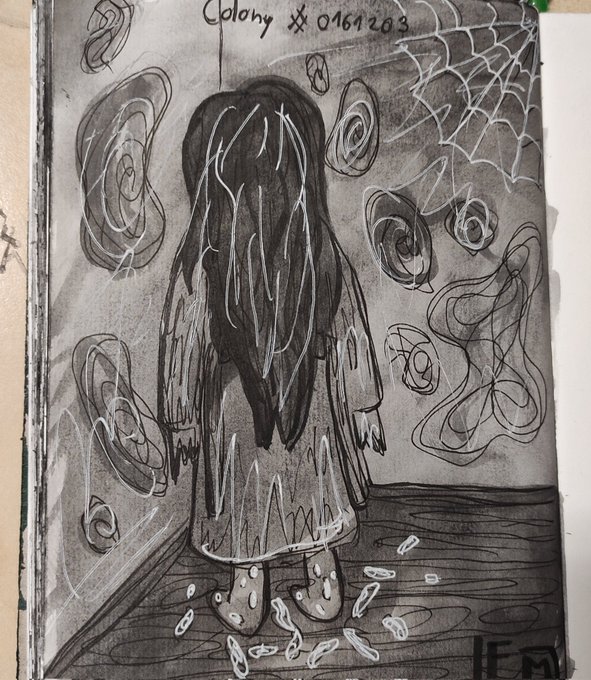 Day 22 - colony I was away from home the entire day I am so tired. This kinda sucks but its fineee #inktober2022 #inktober #themagnusarchives #tmatober #tma #MagnusPod #tmafanart