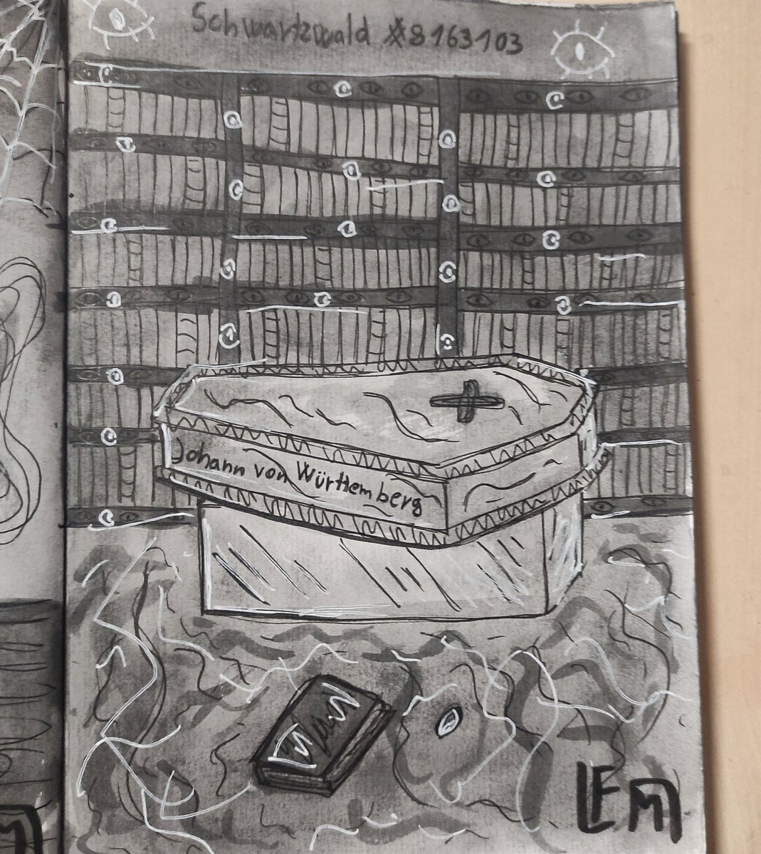 Day 23 - schwarzwald All the little eyes and books took so damn long to draw why do I keep doing this to myself #inktober2022 #inktober #themagnusarchives #tmatober #tma #MagnusPod #tmafanart