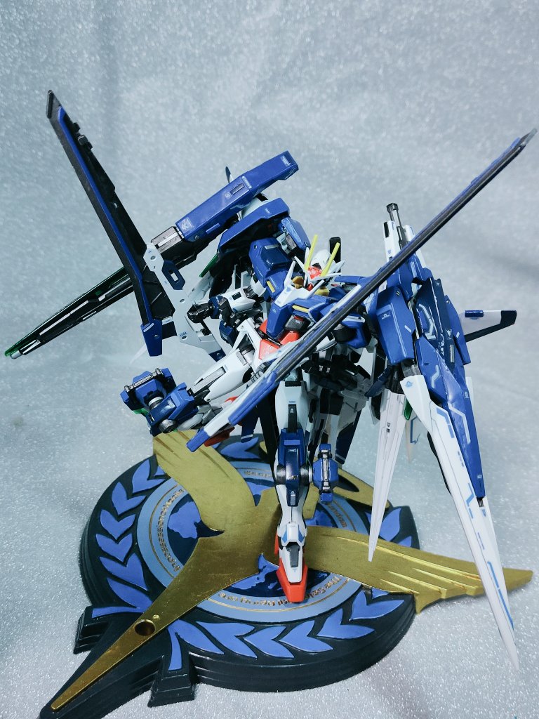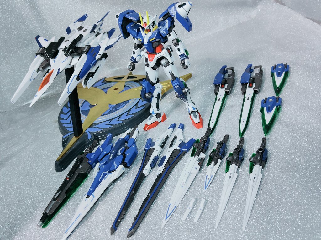 「ダブルオーザンライザーサーティーンソード/G」完成です!😆 ピクシブ百科事典にもネタバリエーションとして紹介されている機体です😂 13本の剣と1丁の銃…取り回しがよいかは怪しいところですが、刹那なら大丈夫でしょう😊 #ガンプラはどんな自由な発想で作ってもいいんだ #ガンダム00 #ガンプラ