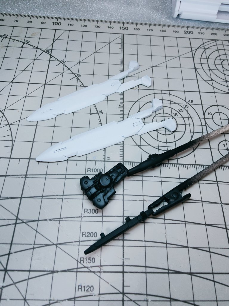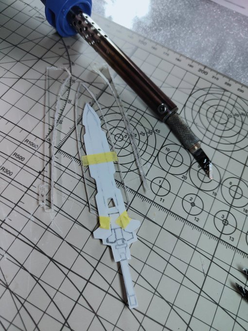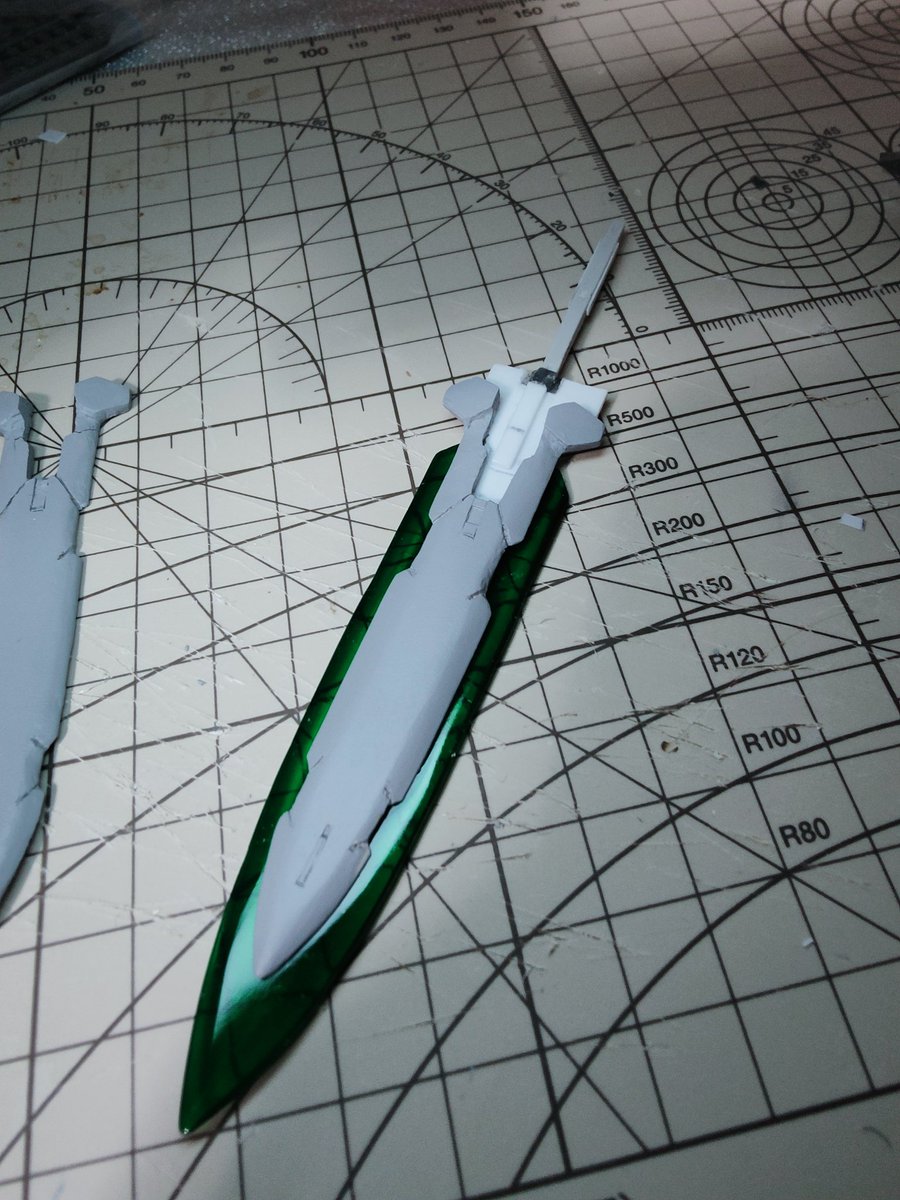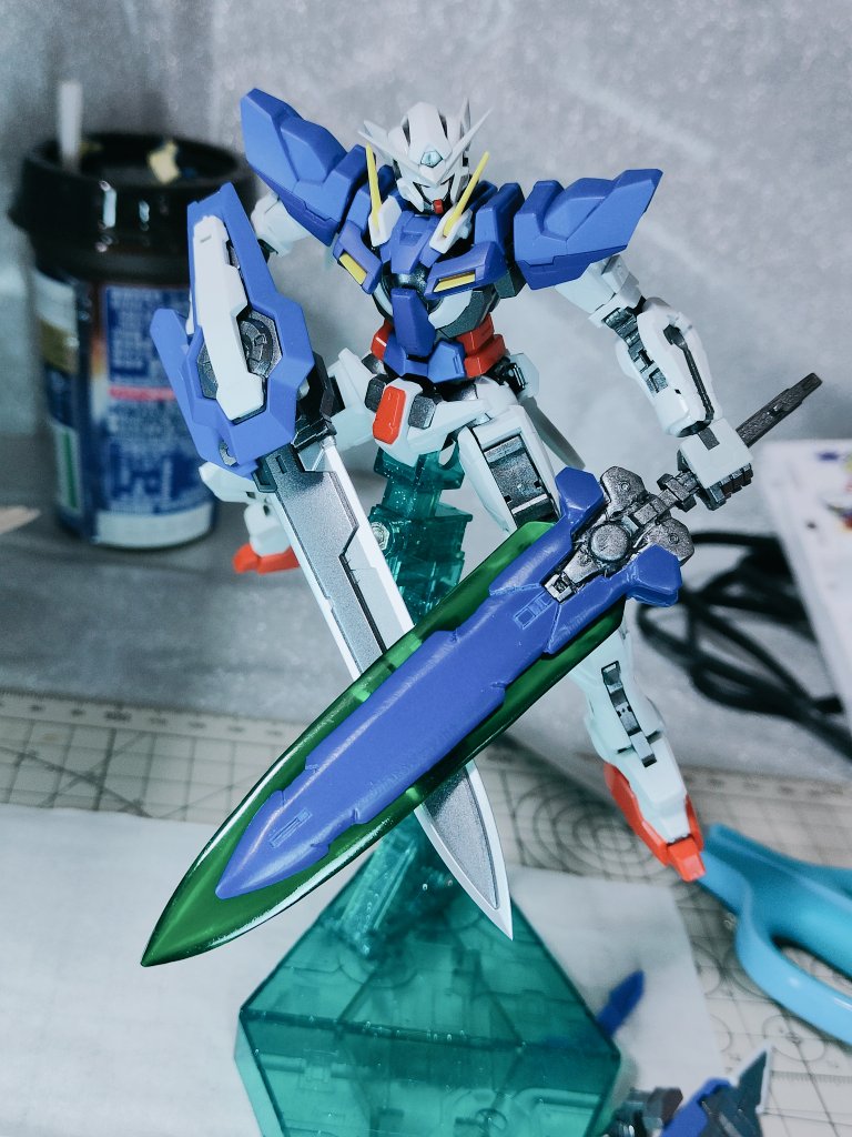 デヴァイズエクシアのGNラスターソードが形になってきました😊 まだまだ部分塗装・スミ入れ・デカール貼り・つや消しが残っていますが、いったん置いといてバックパックの作製に入ります👍 #ガンプラ改造 #ガンプラ好きな人と繋がりたい #ガンダム00 #ガンプラはどんな自由な発想で作ってもいいんだ