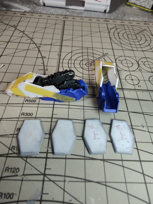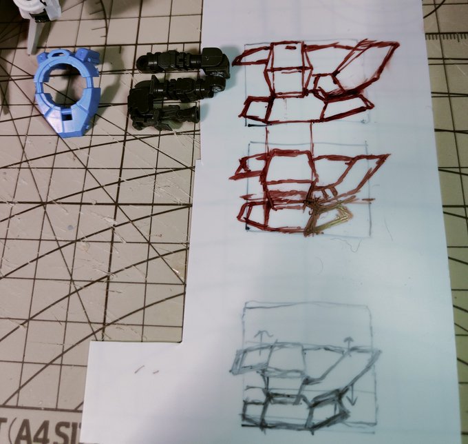 デヴァイズエクシアのバックパックの続きです😆 下書きで大まかな形をイメージしてから、順番にパーツ作りを行います😄 今回はシールドを取り付けたりできる青い部分を作りました👍 地道に1パーツずつ作ればいつかは終わるはず…! #ガンプラ改造 #ガンプラはどんな発想で作ってもいいんだ #ガンダム