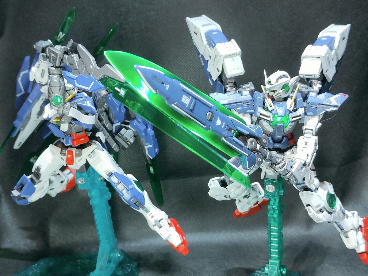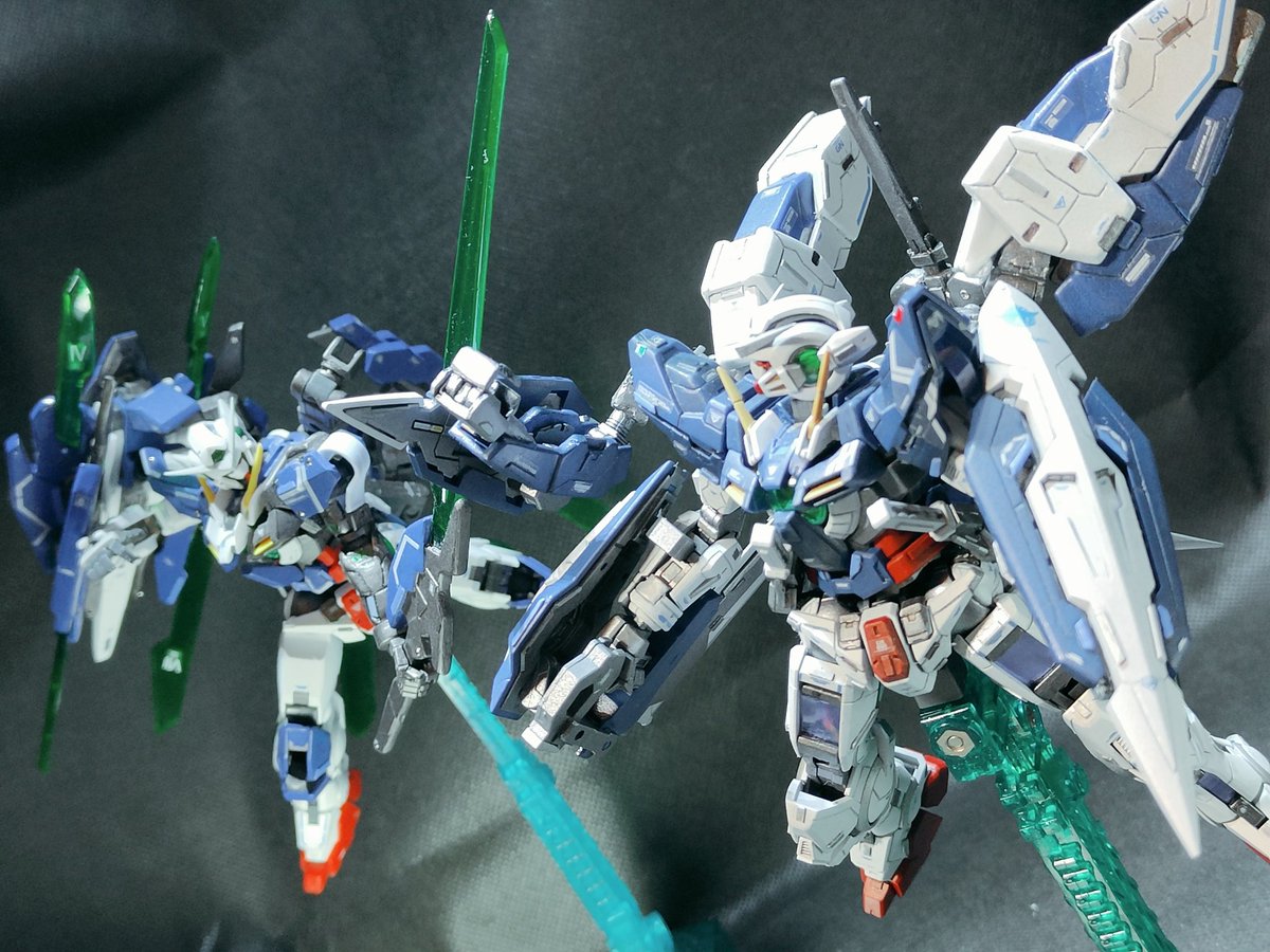 この前は多くのいいね・RTいただきありがとうございました!🙇 せっかくなのでデヴァイズエクシアとリペアⅣの写真を撮ってみました✨ グラハム「手合わせ願おうか、少年!」 刹那「なぜエクシアが!?誰が乗っている…!?」 という妄想が働きます🤣 #ガンダム #ガンプラ好きと繋がりたい #ガンダム00