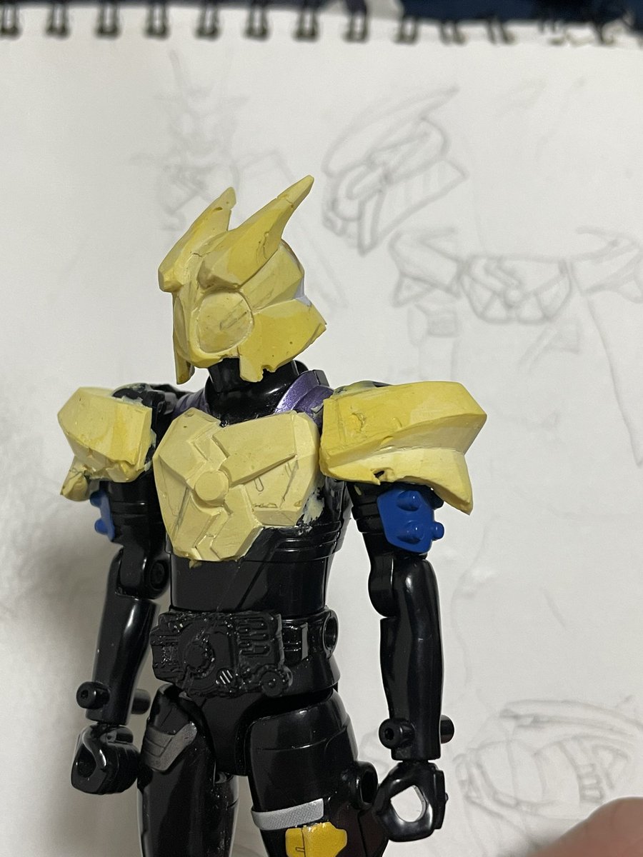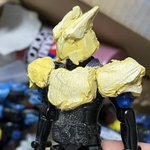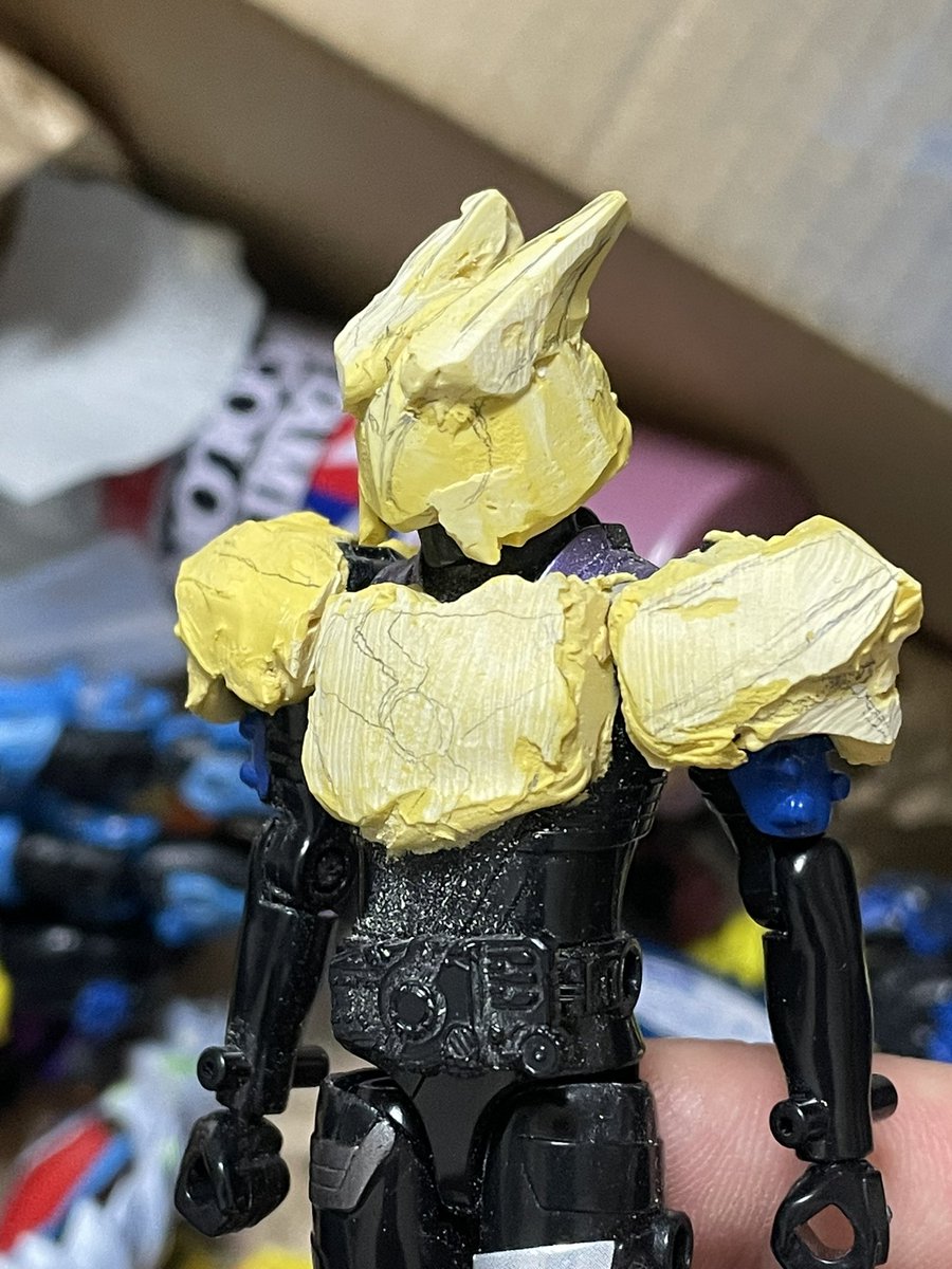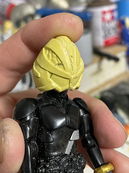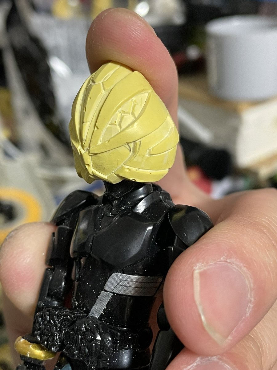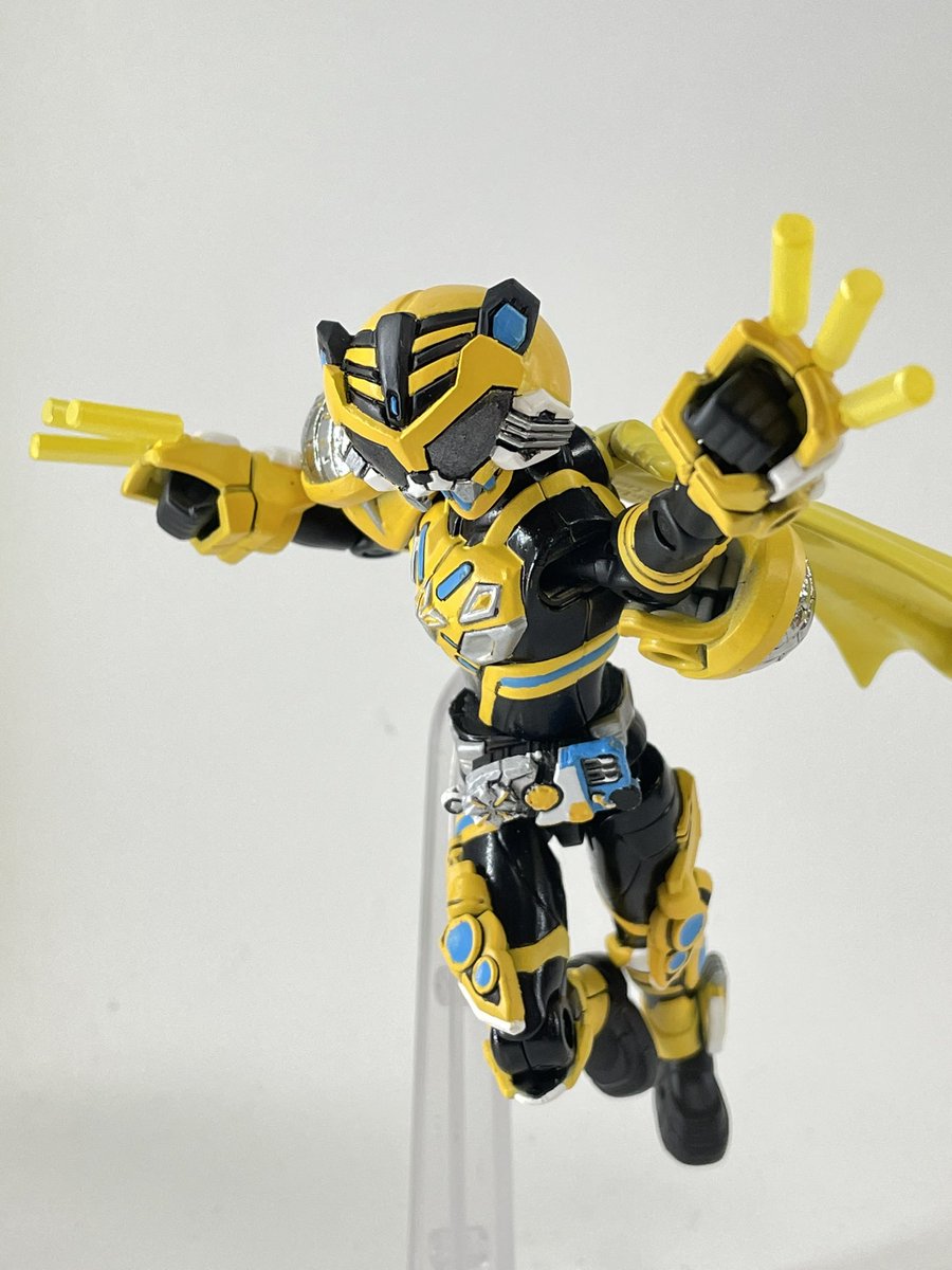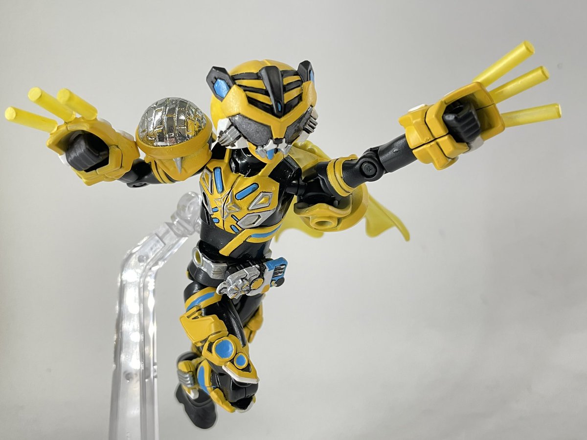 #今週のデザグラずかん 【装動】仮面ライダーハチビー【改造】 ♪ハチビー♪ハチビー♪ハ・チ・ビー♪と歌いながら現れる。2,3回骨折してるかもしれない。 黒いシマシマを涙ラインからのOシグナルを囲う縁取りにしたのマジなめなめ(無礼無礼) #ニチアサフィギュア改造部